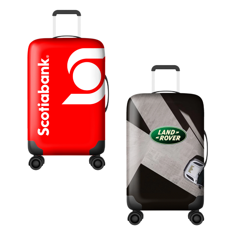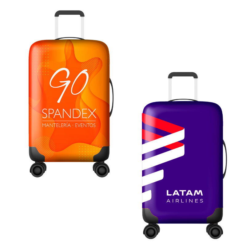 Cubre maleta o funda de maleta personalizadas y corporativas spandex.